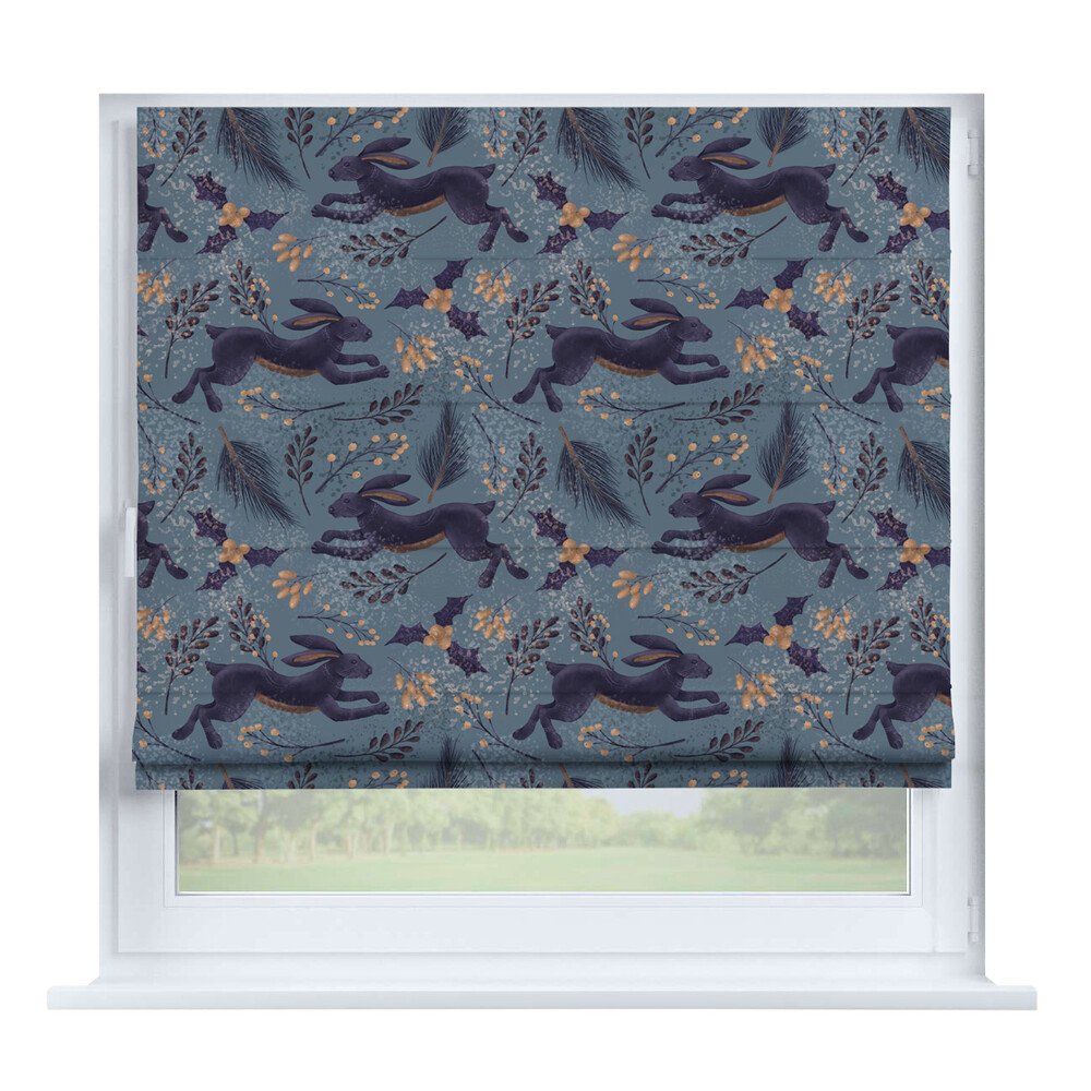 Римская штора на створку ткань вельвет васильковый, карниз верёвочный